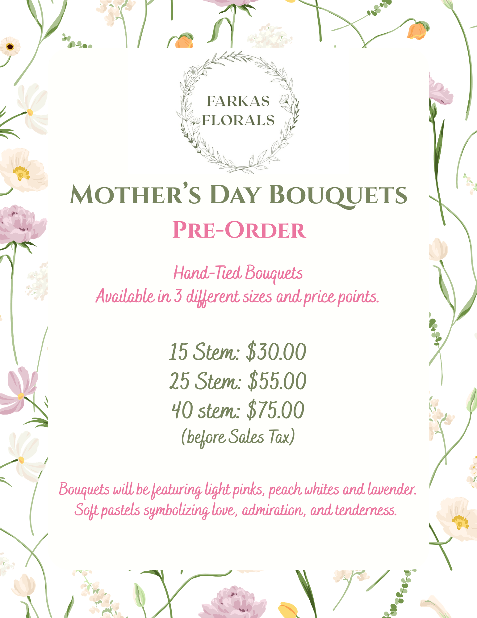 Please fill out the contact form below! Hannah will then email a service selection form and invoice due the weekend of Mother’s Day.